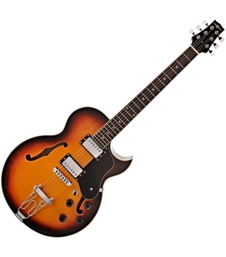 San Diego Semiakustisk gitar er et instrument med et vintage utseende og en autentisk tone. En høykvalitets sunburst overflate på en hul kropp av lønn en bro med trapes-stil og to krombelagte humbuckere gjør at denne gitaren passer inn i jazz- og bluesband. En høykvalitets satt lønnehals gjør den enkel og behagelig å spille. ...
