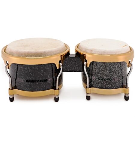 Deluxe Bongotrommesett 7 "+ 8.5" fra Gear4Music er et par håndkonstruerte lukseriøse bongotrommer med flott lyd. Disse bongotrommene er produsert til en usedvanlig høy standard med naturlige skinn og justerbar spenning. Deluxe bongotrommer fra Gear4Music har også unikt gullfarget hardware og en fantastisk glinsende svart glitteroverflate. Kroppen av lindetre gir en holdbar konstruksjon så vel som å produsere de allsidige tonene som er veldig nødvendig for bongo-spilling. ...