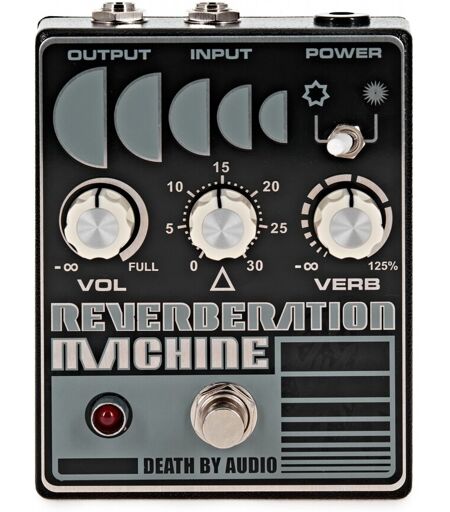 Death By Audio Reverberation Machine Ambient Reverb gir en helt ny dimensjon til nesten hvert instrument du bruker det med. Denne pedalen skaper syntetiske atmosfærer og gir en herlig atmosfære til lyden din. Denne maskinen har en mangfoldig natur og bruker noen få enkle og intuitive kontroller men hver og en av dem har en utrolig punch. De tre kontrollene består av volum høyde og verb og en mørk og lys bryter som veksler mellom lysere og mørkere omgivelser. Denne pedalen er laget for hånd og laget med komponenter av høyeste kvalitet for å sikre at levetiden bevares. ...