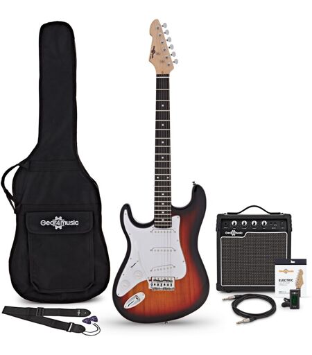 Gear4Music LA Venstrehendt Elektrisk Gitar Sunburst 10W Gitarforsterker & Tilbehørspakke