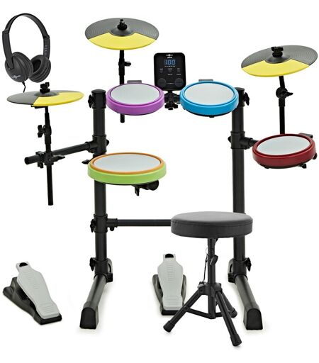 Junior elektronisk trommesett med hodetelefoner og krakk fra Gear4Music