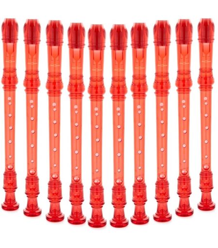 Red Descant Recorder with Cleaning Rod by Gear4music Pack of 10