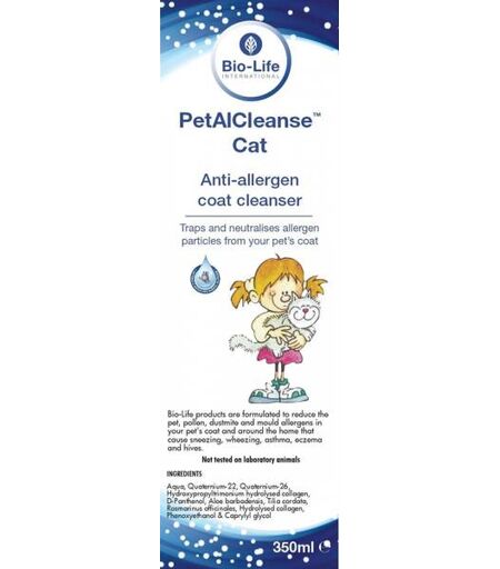 PETALCLEANSE CAT - 350mlPetal Cleanse C Katt - Anti-allergen kjæledyrsrens for å forhindre irritasjon i øyne, nese, svelg og lunge i nærvær av en katt eller andre små lodne eller fjærete kjæledyr.Alle lodne eller fjærete kjæledyr produserer allergener som kan forårsake allergiske reaksjoner hos små barn og voksne. Allergenene kommer fra kjæledyrets spytt-, urin- og svettekjertler og blir avsatt på pelsen når de slikker eller lindrer seg.PetalCleanse / C ™ er en enkel, tørk av lotion som inneholder negativt ladede overflateaktive stoffer som fjerner de positivt ladede allergenene fra pelsen til kjæledyret ditt før de kommer i luften eller kommer i kontakt med huden din. Brukt en gang per uke, hver uke, kan det forhindre nysing, tungpustethet, astma og eksem, slik at du kan leve i harmoni med din lodne eller fjærete venn (er).PetAlCleanse ble tildelt en Allergy UK Costumer Care-pris.Hyppighet:Vaskemiddel for katter, kaniner og andre små kjæledyr. tilføy 30ml på en tørr klut, og tørk med håndkle etter bruk.Pollensesong: En gang i uken.Dyr og støvmid: En gang i uken ...