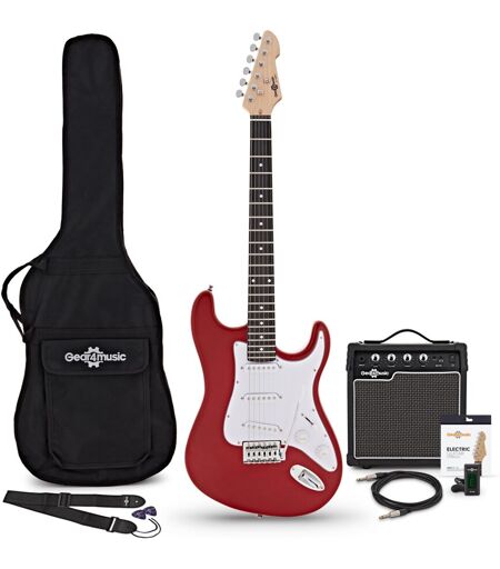 Gear4Music LA Elektrisk Gitar Rød 10W Gitarforsterker & Tilbehørspakke