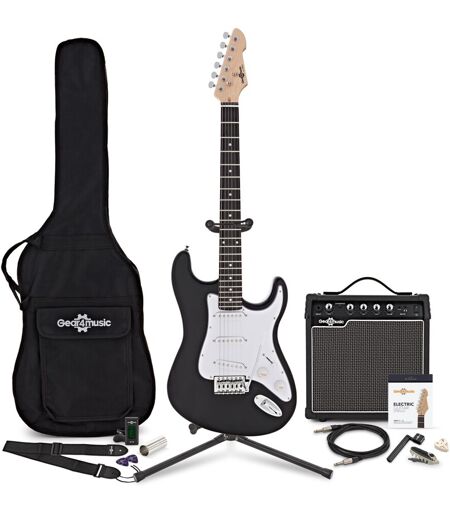 Gear4Music LA Elektrisk Gitar Svart 15W Gitarforsterker og Ultimat Tilbehørspakke