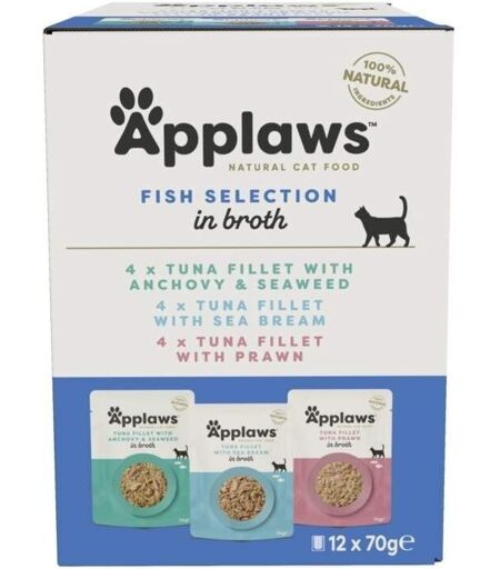 Applaws Cat Chicken & Fish er et delikat kompletteringsfôr til katten din. Delikate naturlige smaker av kjøtt i buljong.Multipakken inneholder4 x tunfisk & ansjos 70g4 x tunfisk & reker 70g4 x tunfisk & havbrasme 70g ...