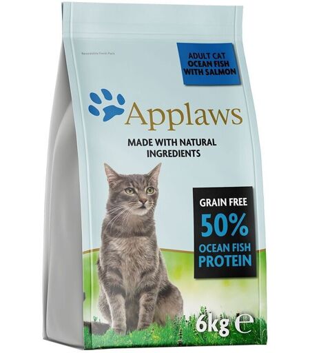 Applaws Cat Adult Fish & Salmon - Et naturlig og sundt tørrfôr til voksne katter. Helfôr Applaws Cat Adult Fish & Salmon, er et premium tørrfôr for voksne katter som etterligner kattens naturlige kosthold. Fôret er komplett fritt for kunstige fargestoffer og konserveringsmidler, mel og korn. Det er også beriket med probiotika og prebiotika som bidrar til en sunn og balansert tarmflora. Hovedingrediensene er: havfisk, laks og grønnsaker. Applaws Cat Adult Fish & Salmon oppsummering: Fri for kunstige farger og konserveringsmidler for et naturlig og sunt kosthold. Inneholder ikke mel eller korn, som gjør den egnet for katter med allergi eller sensitiv mage. Beriket med probiotika og prebiotika for å fremme sunn tarmflora og optimal fordøyelse Kommer i to størrelser: 1,8 kg og 6 kg sekker. ...