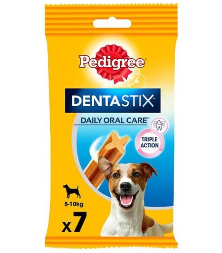 Datodeal: Best før 08.11.25 - Fortsatt spisbare i lang tid etter dettePedigree Dentastix 7pk for hunder mellom 5-7kgDen unike X-formen og den svakt slipende strukturen i Pedigree® Dentastix™ fjerner plakk. Når hunden tygger, produserer den spytt, noe som bidrar til å vaske bort matrester og plakk fra tenner. De aktive ingrediensene fungerer i salvien selv etter at hunden har spist opp tyggestangen. Nå med ekstra tilsatt Vitamin E, som er med på å opprettholde en sunn munn. Den beste måten å ta vare på din hund sine tenner er gjennom daglig tannpuss. Pedigree®Dentastix™ Triple Action: • Reduserer oppbyggingen av tannstein med opp til 80% ved daglig bruk • Renser tenner som er vanskelige å nå • Bygger opp om et sunt tannkjøttBest før: 08.11.25EAN: 5010394984577 ...