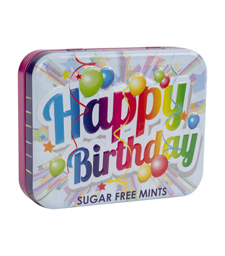 Friske mint-pastiller i fin bursdagsinnpakning og teksten "Happy Birthday". Perfekt å gi bort som gave til en venn! ...