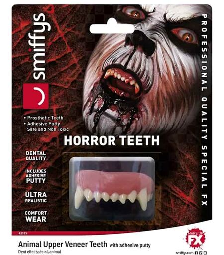 Ulende under fullmånen kan du her komme til Halloween-feiringer med en super Varulv-look. Disse tennene viser at du har tenkt på alt, tenner inkludert, noe som gjør looken din ekstra gjennomført og super. Dessuten er du herved ikke avhengig av fullmåne for å være en skremmende varulv, disse tennene funker like fett under halvmånenetter. ...