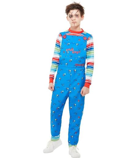 Ta Halloween til et nytt nivå med vårt Chucky Barnekostyme, inspirert av den ikoniske og uhyggelige dukken fra "Child's Play" filmene. Kostymet består av en detaljert blå snekkerbukse, trykket med presise detaljer for å gi en autentisk fremstilling av Chuckys uhyggelige utseende. For å komplettere snekkerbuksen, følger det med en fargerik stripet genser. Denne genseren gjenskaper den karakteristiske stilen til Chucky, med sine levende farger og de brede stripene. Med dette kostymet vil ditt barn garantert vekke oppsikt og skremme vettet av de som kjenner igjen den fryktinngytende dukken. Det er det perfekte valget for enhver skrekkfilm-elsker eller for de som bare vil gi Halloween en ekstra dose skrekk. Så, er ditt barn klart til å skape skrekk og gru denne Halloween? Gå for vårt Chucky Barnekostyme og gjør deg klar til å skremme alle på festen! ...