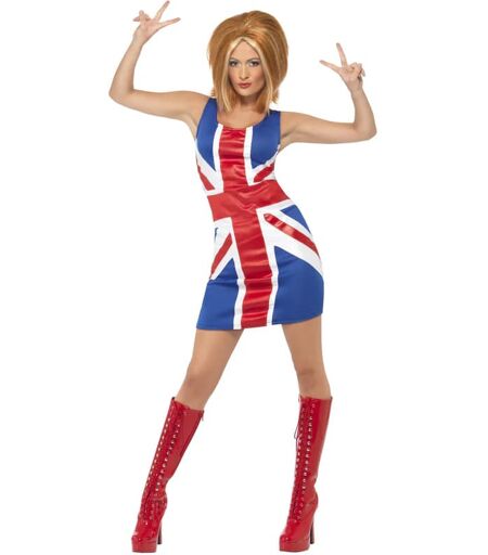 Gjenopplev 90-tallets popkultur med dette Ginger Spice-kostymet. Kjolen er inspirert av den ikoniske stilen til den britiske superstjernen og er perfekt til temafester, Halloween eller andre utkledningsanledninger. Den er laget i et tettsittende snitt med Union Jack-mønster på forsiden og ensfarget blå bakside, som gir et autentisk uttrykk og høy gjenkjennelsesfaktor. ...