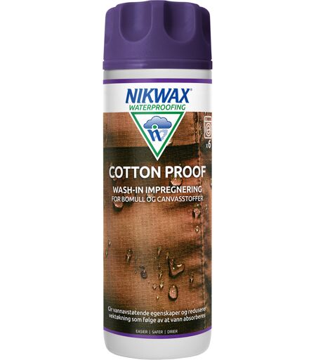 Nikwax Cotton Proof har et høyt voksinnhold som forbedrer prestasjonsevnen til bomullstekstiler som ellers gir dårlig beskyttelse mot vær og vind. Kan brukes på teltduker, bukser, jakker med mer. Nikwax Cotton Proof kan spes med vann og sprayes eller strykes på bomullstelt selv om teltet er vått. Egenskaper for Nikwax Cotton Proof: Hovedbruk: bomullsplagg, teltduker, polyester/bomullsblandinger Volum: 300 ml ...