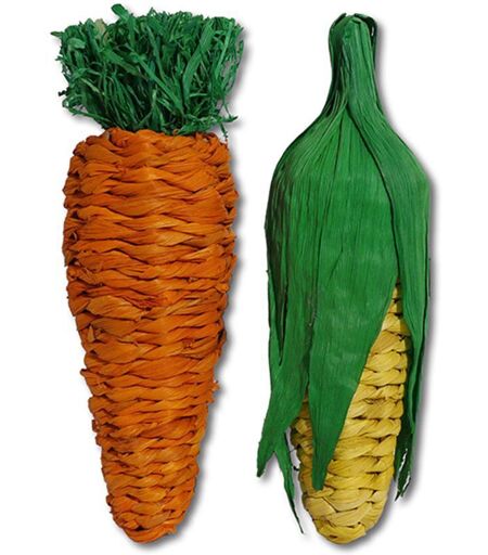 Rosewood Jumbo Play Veg Gulrot og Mais: To tyggeleker for gnagere Disse maiskolbene og gulrøttene er laget av tørkede maisblader. De er naturligvis farget med naturlige farger som er trygge for kjæledyr. Pakken inneholder en gulrot og en maiskolbe, begge cirka 21 cm lange. Disse tyggelekene er perfekte for både marsvin og kaniner, og hjelper til med å holde tennene trimmet, samtidig som de aktiviserer gnageren! Rosewood Jumbo Play Veg Gulrot og Mais 2 stk. tyggeleker for gnagere Cirka 21 cm lange ...