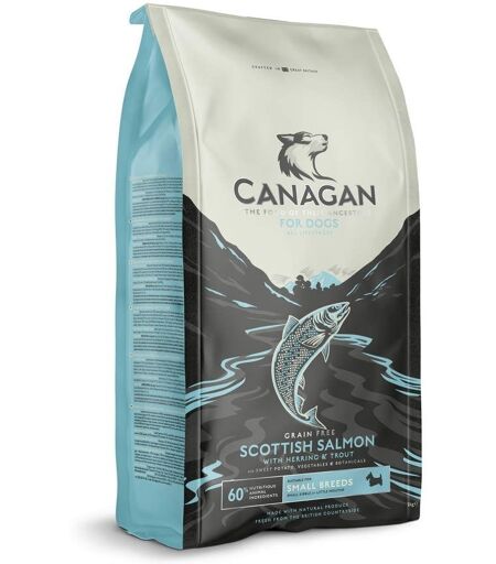 Canagan Dog Small Breed Scottish Salmon Canagan Dog Small Breed Scottish Salmon er et tørrfôr spesielt tilpasset mindre hunderaser. Fôret er fritt for kornprodukter, og har høyt innhold av fisk som er en naturlig kilde til Omega-3 og Omega-6. Disse fettsyrene bidrar til sunn hud, blank pels og friske, sterke ledd. Canagan er nøye med å produsere næringsrikt fôr med mange gode ingredienser som er bra for hundens helse. ...