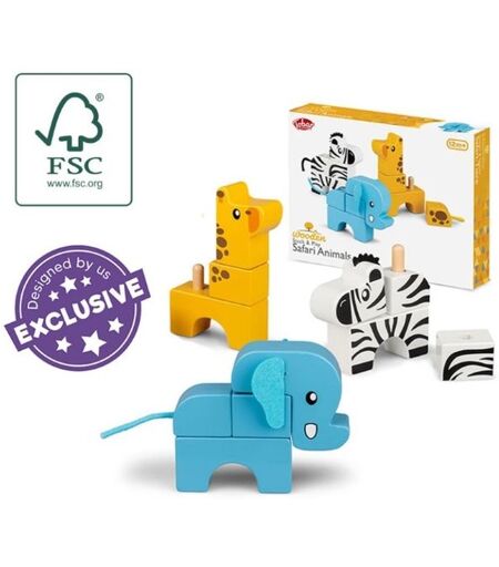Utforsk dyreverdenen med vårt Stack and Play Safari Animals sett! Dette settet inneholder tre treleker: en giraff, sebra og elefant, som barna kan stable på treplugger for å bygge de respektive dyrene. For de kreative sjelene, kan delene mikses og matches for å lage interessante nye kombinasjoner. Dette lekesettet er ideelt for små barn og bidrar til å utvikle hånd-øye-koordinasjon og finmotoriske ferdigheter.Nøkkelfunksjoner:DyrestableklosserBygg en giraff, sebra og elefantMiks og match deler for kreative kombinasjonerFlott for utvikling av hånd-øye-koordinasjonPerfekt for små barnStørrelse: 13.5cmEAN: 5038728143117FSC Godkjent ...