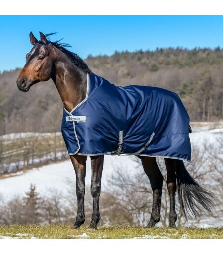 Bucas Freedom Turnout High Neck - 150g - Navy / Silver Quiltet "Freedom Turnout" fra Bucas er en praktisk utedekken og fungerer utmerket som overgangsdekken. Dekkenet har fôr av silke og 150 g fylling og kan vanligvis brukes ved temperaturer mellom -5 til +10 grader. Merk! Dekkenets passform er "slim fit" og har ingen bue -friheter. Den er derfor best egnet for slanke hester eller hester med normal kroppsbygning. På tyngre hester kan dekkenet bli for overfylt! Kjennetegn: Halvhøy nakke. Vanntett med pusteevne. Ytterstoff i 600 denier Rip stop nylon. T-stangspenner med snaplås. Fôr i silke. Kryssreim. Fôr med silkefølelse på skulderområdet for å motvirke friksjonsskader. Halebeskyttelse... ...