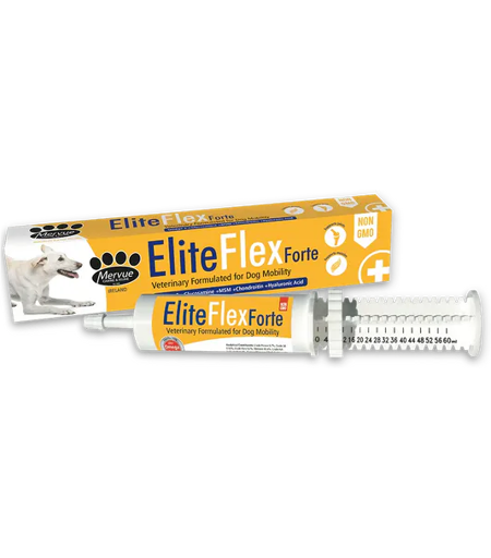 BeskrivelseEliteFlex Forte er spesielt utviklet for hunder. Den hjelper til med å støtte vedlikehold av ledd og brusk fra skader. Perioder med høy aktivitet stiller ekstra krav og slitasje på mobiliteten til hunden. I tillegg bremser naturlig aldring den naturlige helbredningen på slitasje, så dette er et godt produkt for eldre hunder.EliteFlex Forte inneholder:• Omega 3 - forskning har vist at Omega 3 trygt kan støtte lindring, betennelse og smerte forårsaket av leddgikt, samt bremse ledddehydrering.• Hyaluronsyre - kjent for sin evne til å danne svært viskøse løsninger som gjør hyaluronsyre til primær bestanddel av leddvæske i leddene til hunder.• Glukosamin - glukosamin vil øke hyaluronatinnholdet i leddet.• Chondroitin sulphate - en naturlig "vannmagnet" i leddet for å tåle konstant kompresjon. Kondroitinsulfat hemmer også brusktygge enzymer som finnes i skadede ledd.• Chelatert sink - sink er et essensielt spormineral som er viktig for helsen til hunden din.• Vitamin E - Vitamin E er en kraftig antioksidant som beskytter fettstoffene i cellemembranen mot oksidasjon. og hindrer skade på cellemembraner. Cellemembranen holdes myk slik at nærings- og avfallstransport styrkes. Man tror at vitamin E kan styrke immunforsvaret, få sår til å gro fortere og forbedre sirkulasjonen i kroppen.• MSM - naturlig anti-inflammatorisk, naturlig kilde til biologisk tilgjengelig svovel som igjen er viktig for vedlikehold av binde- og muskelvevPasser til valper over 8 uker og voksne hunder. Blandes godt inn i maten.Liten hund, opptil 5kg: 2ml daglig i 30dagermedium hund, 5-15kg: 4ml daglig i 30dagerStor hund, 15-30kg: 8ml daglig i 30dagerEkstra stor hund, 30kg+ : 12ml daglig i 30dager ...