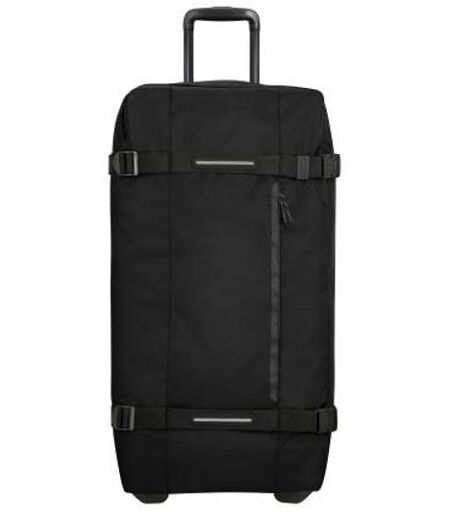 Duffelbag med hjul 116 L American Tourister. American Tourister Urban Track duffelbag for tøffe jenter og gutter på 116 liter, som er produsert i solid bærekraftig resirkulert polyester. Duffelbagen åpnes fra midten og kan derfor pakkes fra to sider. Solide glidelåser og stillegående gummierte hjul. Setter du bagen på høykant trenger du ikke bekymre deg for at den skal velte. Duffelbagen har forsterket bunn, sånn at den står av seg selv når den er pakket.American Tourister er et varemerke eiet av Samsonite.Hjul: Solide store stillegående gummierte hjul som ruller fint over de fleste underlag og gir god stabilitet.Lås: Solide glidelås lukking med med TSA kombinasjonslås og kraftige kompresjonstropper. Interiør: Åpnes på midten med pakkestropper på den ene siden, og skillevegg med glidelåslukking på den andre siden.Håndtak: Solid dra håndtak gjør bagen lett og manøvrere i alle retninger. To bærehåndtak på fronten, ett i bunnen og et på toppen.Glidelåslommer: To utvendige glidelåslommer.Produktinformasjon:Materiale: Miljøvennlig kraftig resirkulert polyester Recyclex®Farge: SvartMål: 78,5 x 44 x 43 cmVolum: 116 literVekt: 3 kgGaranti: 3 år ...
