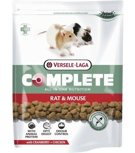 EgenskaperVersele-Laga Complete Rat & Mouse bidrar blant annet til:God tannhelse takket være de lange fibrene i fôret som må tygges skikkelig.Å motvirke hårballer, også takket være de lange fibrene som reduserer risikoen for hårballer.Vakker pels: Tilsatt omega 3 og 6 for å bidra til en vakker hund og pels.Luktkontroll: Yucca Schidigera trekker ut ammoniakk og andre komponenter som bidrar til sterk lukt fra avføringen.FôringSe detaljert fôring på emballasjen.BrukEt helfôr til rotter og mus. ...