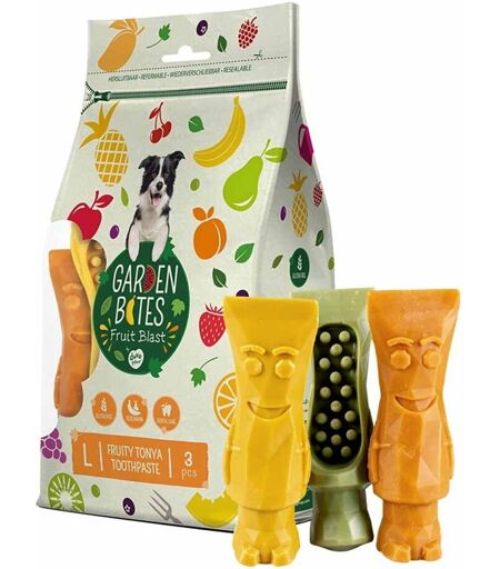 Garden Bites Tonya Toothpaste Dentaltygg – Veganske tyggebiter formet som morsomme figurer og laget av sunne ingredienser! Disse nydelige tyggebitene gir utmerket stimulering samtidig som de har pleiende egenskaper for tennene. De er 100 % veganske og har utsøkt smak, i tillegg til at de er laget av sunne ingredienser. Hva inneholder Garden Bites Tonya Toothpaste? Disse godbitene inneholder søtpotet, banan, pære og fersken, og er også tilsatt naturlig mynteolje som gir en frisk og fresh pust. Dentaltygg for hunder 100 % vegansk Sunne ingredienser Inneholder 55 % søtpotet ...