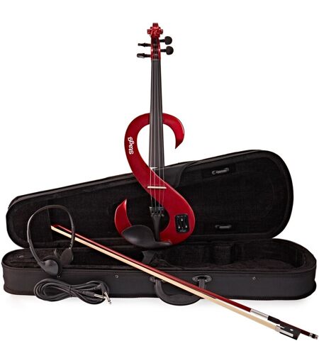 Stagg S-Formet Elektrisk Fiolin Pakke Metallisk Rød