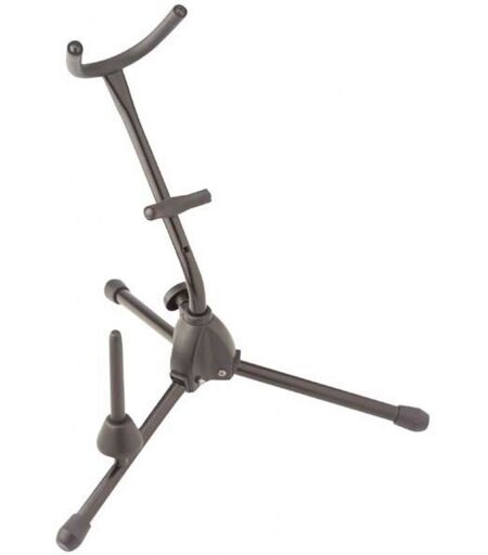 Stagg saksofon- og klarinettstativet er kompakt og sammenleggbart egnet for en alt- eller tenorsax slong med klarinett eller fløyte. Saksofonen din holdes i metallstøttearmene som er dekket med skum for å beskytte instrumentets finish. En ABS-støttestang gir stabil støtte for fløyten eller klarinetten din. Bena er sterke og sammenleggbare noe som gjør dette ideelt for omreisende spillere som bruker både saksofon og klarinett eller fløyte. ...