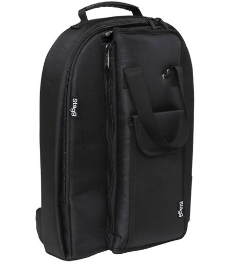 En allsidig veske for alle trommeslagere. Stagg-ryggsekken med flyttbar pinne-pose inneholder to hovedvatterte rom to tilbehørsbagger en nettingpose et navnekortveske og to eksterne glidelåsvesker med en avtakbar pinne-pose - perfekt for enhver utøvende og omreisende trommeslager. Nylonmaterialet med innvendig polstring med høy tetthet gir eksepsjonell beskyttelse til dine eiendeler under reiser. Stagg-ryggsekken er også utstyrt med polstrede ryggstropper og et ergonomisk håndtak for ekstra komfort og enkel reise. ...