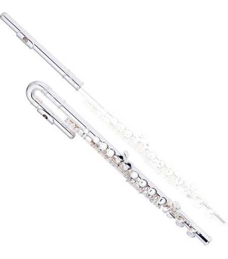 Stagg FL221S er en godt avrundet og stilig fløyte som kommer med både buede og rette hodeledd. Å ha begge hodeleddene er spesielt nyttig for yngre eller mindre spillere som kan trenge det buede for å starte og fortsetter til det rette hodeleddet når det er stort nok. Dens forskyvning G øker også den ergonomiske følelsen av tastene. Kroppen og mekanikken til denne fløyten er laget av silver og belagt med silver denne kombinasjonen brukes ofte på fløyter på grunn av rimeligheten til silver og de akustiske egenskapene og motstanden til silver. Dette kommer i et antrekk inkludert et etui med stropper en rengjøringsserviett en klut og et par hansker. ...