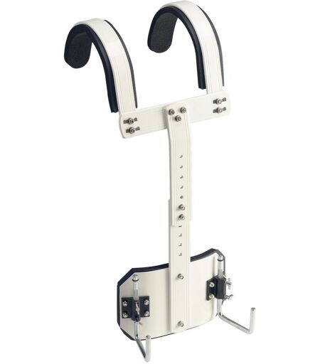 Lek i komfort. Stagg Marching Carrier For Skarptromme gir ultimate support for marsjerende snare eller tenortrommel. Den lette designen gjør at brukeren kan utføre i lange perioder uten ubehag. Den justerbare høyden og breddestørrelsen tar også belastningen vekk fra kroppen når du spiller. Stengene for å feste tromme kan flyttes for å imøtekomme en rekke trommelstørrelser og utføre stiler. En glatt hvit finish sikrer at du vil se på delen mens den høres ut best. ...
