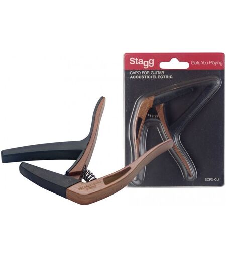 Stagg Curved Trigger Capo For Acoustic & Electric Guitar Dark Wood