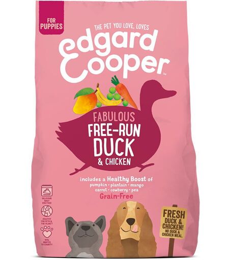 Edgard & Cooper Dog Grain Free Puppy And & KyllingEdgard & Cooper Dog Grain Free Puppy And & Kylling er et fullfôr uten kornprodukter som passer for valper i vekst. Fôret er laget av fersk kylling, poteter og fersk and, og inneholder ikke kjøttmel eller andre unødige tilsetninger. Gi din valp en god start på livet med et naturlig og næringsrikt fôr!Edgard & Cooper Dog Grain Free Puppy And & Kylling er beriket med linfrø, kokebanan og fiskeolje som alle er nyttige og gode ingredienser!Bra å vite om varemerket:Edgard & Cooper satser mye på å bidra for miljøet og på å forsøke å gjøre verden til et bedre sted for oss og dyrene våre. Utover dette er de selvsagt nøye med at deres godbiter og fôr holder høy kvalitet, ettersom bare det beste er godt nok for våre firbente venner.Fôr- og godisposene er produsert av plantemateriale og er komposterbare.Boksene er produsert av aluminium – et materiale som er lett å gjenvinne og som holder maten fersk lengeIngrediensene fraktes i kjølebiler som gjør at de ikke trenger å bli bearbeidet for å holde seg ferskeFôret bakes lenge på relativt lav temperatur, noe som gjør at næringsstoffer og smak holder seg godtEdgard & Cooper har en Zero Pawprint Plan som innebærer selskapets målsetting om å bidra positivt for miljøet innen 20251 % av salget går til veldedige formål – til hunder og katter som har det vanskelig i ulike deler av verden ...