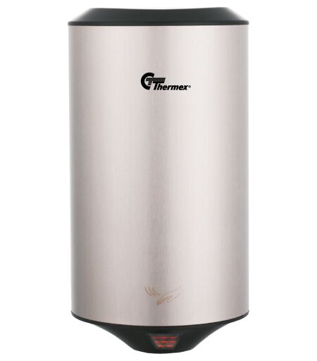 Produktspesifikasjoner Med en Mini Jet-dryer fra Thermex sparer du utgifter til håndklær, servietter samt tidsforbruk til servisering. Mini Jet-dryer fra Thermex er utført i rustfritt stål med Top og bunn i sort. En helt igjennom stilren Håndtørker der med sine minimalistiske dimensjoner passer perfekt inn i ethvert toalett eller bade rom Privat eller næring. Energiforbruket er på bare 1150 W inkl. el-varmeelementet. Med en lufthastighet på 68 m/s tørres hendene dine på rekordtid. Tilslutning (V) 230 Energiforbrug (W) 1150 Lufthastighed m/s 68 Lydtryk (dB(A) - 1 mtr.) 72 Nettovægt (kg) 3,4 ...