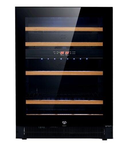 Spesifikasjoner WFG 45 Mindre vinkjøleskap hvor det er plass til 44 flasker. Skapet har justerbar installasjons høyde 820-875 mm og egner seg til både frittstående modell eller det kan bygges inn under eksisterende bordplater. Dualsone skap med 2 atskilte temperatursoner. Ventilatorene i hver sone sørger for at dine flasker blir omgitt med luft av lik temperatur. Som ekstra er skapet utstyrt med vibrasjonsfri kompressor, et innebygget varmeelement og et lydnivå på kun 41 dB(A). Varenummer: 7016 Finish: Sort front/Sorte sider Funksjoner: Tonet glassdør med sort ramme Sorte indvendige sider Bottle capacity: 44 Modell med høyrehengt dør Vendbar dør Kan dørvendes inden levering (bestilles separat) Tonet glassdør i full høyde, med UV-filter Integrert håndtak i hele dørens høyde 5 shelves total 4 stk. trehyller + 1 stk. bunnhylle i ubehandlet bøk Vibrasjonsfri kompressor Automatisk avriming Dualzone, 2 temperatursoner, atskilt Temperaturinnstilling: nedre seksjon 10°-18°C / øvre seksjon 5°-10°C Innebygget varmeelement Resirkulerende luft-kjølesystem Temperaturalarm LED-lys i skapets øverste og nederste seksjon Kan aflåses Justerbar installasjonshøyde 5 års garanti ved registreringen af produktet Klimaklasse: N Tilslutningseffekt: 100 W Spenning: 220-240 V Tilslutningskabel: 2,00 meter Bredde: 595 mm Høyde: 820-875 mm Dybde: 573 mm Betjening: Display for elektronisk temperaturstyring og kontrol Belysning: 2x0,7 (LED) W Lydnivå: 41 dB Montering: Fritstående eller til indbygning Note: På grund af sin højde, kan skabet placeres under eksisterende bordplade. Husk å lese veiledningen først ...