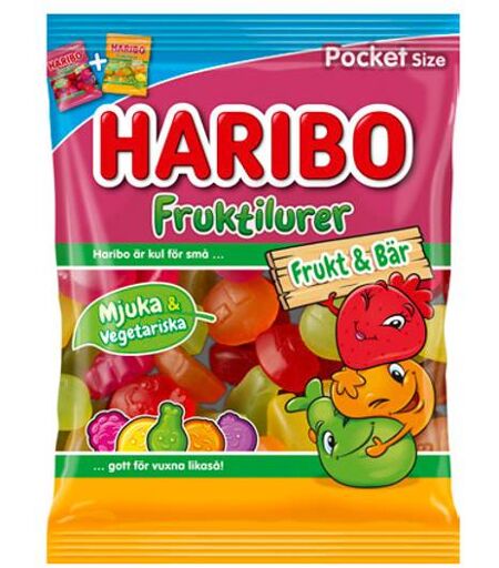 En ny pose med dine myke favoritter. Her får du de deilige smakene: jordbær, appelsin, pære, bringebær, sitron og solbær. Ta del i moroa og dykk ned i den deilige blandingen av søte og myke fruktgummier. Hver pose inneholder 80 gram. Ingredienser: Sukker; glukosesirup; modifisert potetstivelse; syre: sitronsyre; frukt- og plantekonsentrater: spirulina, saflor, eple, sitron, reddik, søtpotet, gulrot, solbær, hibiskus; sirup av invertsukker; aroma; surhetsregulerende middel: trinatriumsitrat; palmeolie; overflatebehandlingsmidler: hvit og gul bivoks, karnaubavoks. ...