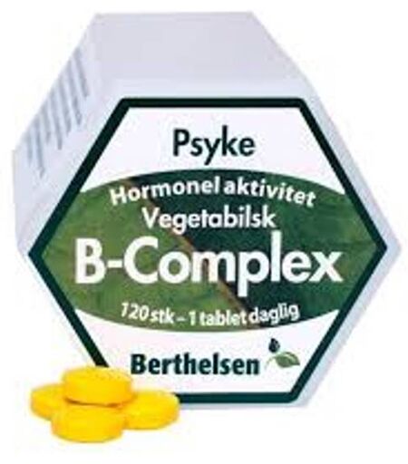Berthelsen Vegetamin B inneholder alle B-vitaminer i en tablett, hvor vitaminene er i korrekt balanse med hverandre. Vegetamin B er spesialdesignet for vegetarianere, glutenintolerante og de som må unngå gjær på grunn av candida-problemer. Hverken ølgjær, gluten eller animalske stoffer er benyttet. Dosering: 1 tablett daglig. Kosttilskudd bør ikke brukes som erstatning for en variert kost. 1 tablett inneholder:Niacin 30,0 mgPantotensyre 7,0 mgVitamin B6 3,0 mgVitamin B2 2,6 mgVitamin B1 2,25 mgBiotin 150 mcgFolsyre 100 mcgVitamin B12 6 mcg Ingredienser: Fyllemidler (dikalsiumfosfat, mikrokrystallinsk cellulose), vitaminer (niktinamid, kalsium-D-pantotenat, pyridoksinhydroklorid, riboflavin, tiaminmononitrat, biotin pteroylmonoglutaminsyre, cyanokobalamin), overflatebehandlingsmidler (talkum, hydroksypropylmethylcellulose, siliciumdioksid, mangesiumsalter av fettsyrer, methylcellulose), maltodextrin, fargestoff (titanoksyd, riboflavin), fuktighetsregulerende middel (glycerol) surhetsregulerende midler (natriumsitrat, sitronsyre). Innhold: 120 tabletter ...