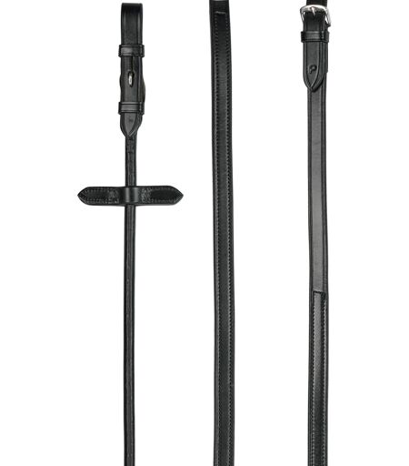 Rullet tøyle laget av en kombinasjon av mykt italiensk skinn og gummi. Gummibelagt side gir ekstra grepstyrke. Enkel ren finish som matcher en rekke andre skinndeler. Dekorative ryggsøm og skinnkanaler. Enkel spennetilkobling og pinnekrokbitsfeste. Lærstoppere for bruk med en martingal.Teksten er maskinoversatt. ...