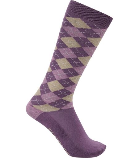 Equipage Lax ridesokker - Montana GrapeTradisjonell lang ridesokk. Det klassiske skotske Argyle-mønsteret har en glitrende lurex-søm som går gjennom hele mønsteret. Ribbestrikket kant gir stabilitet under kneet for å hindre at sokken glir ned. ...