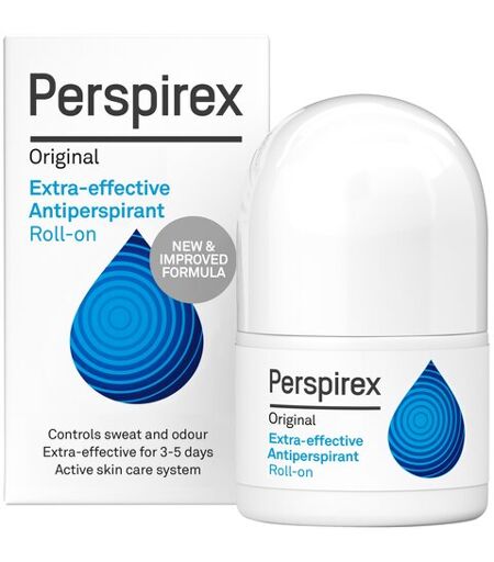 Perspirex Original Antiperspirant er en svært effektiv deodorant som bidrar til å bekjempe selv alvorlige svetteproblemer. Perspirex Original Antiperspirant inneholder 15 % aluminiumklorid. Perspirex er løsningen på selv alvorlige svetteproblemer. Den unike formuleringen kontrollerer lukt og gir ekstra effektiv beskyttelse mot svette i 2-3 dager. Comfort Skin Care-systemet inneholder ingredienser som fukter huden og gir ekstra god hudkomfort. Påføres på kvelden på tørr og uskadet hud. Det er ikke nødvendig å påføre igjen på morgenen. Klinisk dokumentert. Perspirex finnes i tre varianter med ulikt innhold av aluminiumklorid. ...
