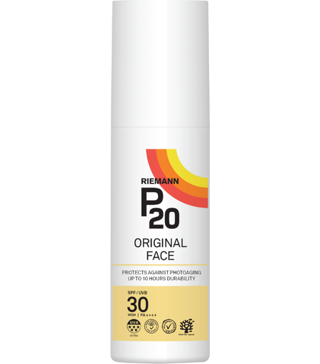 P20 Sun Cream Original Face SPF30 er en solkrem til ansiktet med solfaktor 30 som gir opptil 24 timers fuktighet. P20 Sun Cream Original Face SPF30 gir høy beskyttelse mot UVA- og UVB-stråler og bidrar til å redusere for tidlig aldring av huden som er forårsaket av solen. Solkremen har en lett og raskt absorberende formulering som ikke tetter porene. Med Riemann sin Triple Protection Technology gir solkremen opptil 10 timers solbeskyttelse, er svært vannfast og har mer enn tre ganger EUs minimumskrav for UVA-beskyttelse. Passer til alle hudtyper, også sensitiv hud. EcoSun Pass-godkjent. Allergy Certified. Dermatologisk testet. Vegansk. Uten parfyme. ...