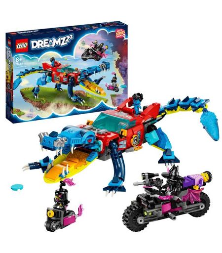 LEGO DREAMZzz Krokodillebil 71458Med byggesettet LEGO® DREAMZzz™ Krokodillebil (71458) kan barn fra åtte år kjøre full fart inn i drømmeverdenen. Settet er basert på TV-serien og gir barn muligheten til å bygge et tøft kjøretøy for å redde Jayden ut av klørne på Nattjegeren! Ett sett, to ...