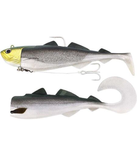 Westin Crazy Daisy jigg 23 cm, 300 gram - headlight. Selv i de laveste hastigheter svømmer Crazy Daisy svært lokkende og trigger kveita og stortorsken til hugg. Crazy Daisy kommer med to ulike kropper, en med curltail som trigger selv den særeste storfisken til hugg med sine lokkende bevegelser selv i svært lav hastighet. Den andre kroppen har padletail som gir softbaiten en perfekt imitasjon av skadet byttefisk. Jigghodet har øyne som ser svært levende ut og slitesterk maling. Ekstra øye på undersiden for feste av stinger (ikke inkludert). Crazy Daisy fra Westin har utviklet seg over mange år og er basert på utseende og kroppsfasong til små-sei, som er en av de vanligste byttefiskene for storfisken langs norskekysten. Likevel, etter mange års testing for å finne den perfekte bevegelsen, formen, størrelse og vekt, har nå Westin endelig klart det. Spesifikasjoner: Lengde: 23 cm. Slukvekt: 300 gram. Farge: headlight. Leveres med: Et jigghode og to ulike kropper (curltail og padletail). Kroker: Enkelkrok #7/0, treblekrok #2/0. Stinger krokrigg 0,40 mm (100 lbs). ...