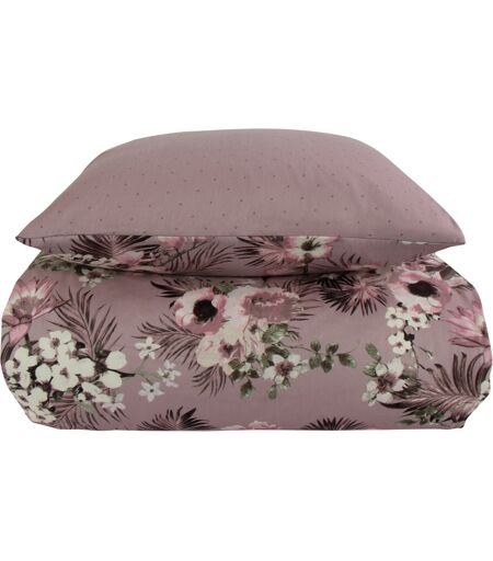 Borg Living Sengetøy 140x220 cm - Vendbart design i 100% bomullssateng - Flowers & Dots lavendel - Sengesett fra By Night