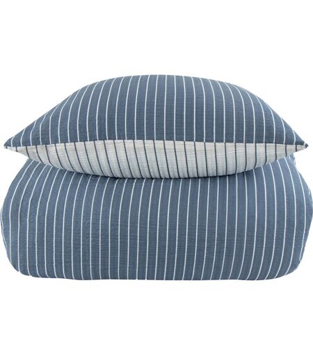 By Night Stripete sengetøy 200x200 cm - kreppet sengetøy blått og hvitt - 2 i 1 design - sengesett i krepp