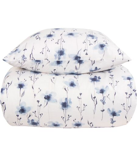 By Night Sengetøy 200x200 cm - Flower blue sengetøy av flanell - Blomstret sengesett - 100% bomullsflanell -