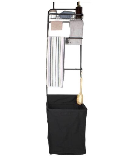 Borg Living Hengeoppbevaring - Sort metall - Oppheng til dør med stoffkurv - Smart oppbevaring med integrert skittentøyskurv