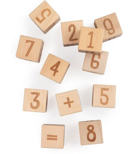 Stilfulle tallklosser laget i massivt sertifisert bøketre, med brennmerkede tall. Bruk som pynt og innredning, og etterhvert til læring og leking med tall og regning ...