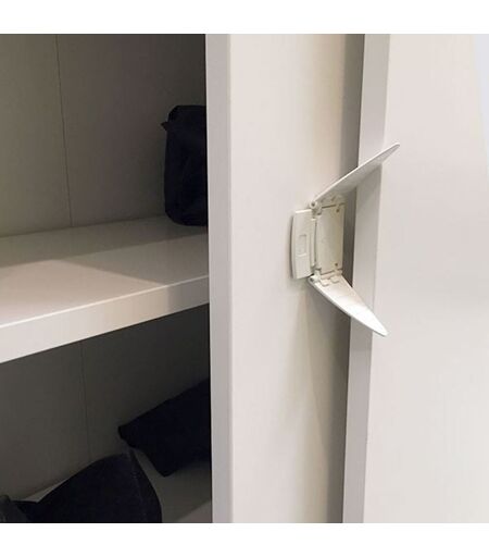 Praktisk barnesikring til skyvedør fra BabyDan. Skyvedørstopperen hindrer barnet i å åpne eller smelle skapdører, og monteres enkelt med dobbeltsidig tape. ...