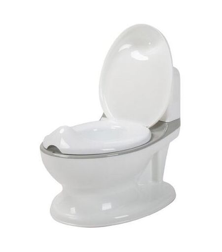 Bli kvitt bleiene med en toalettrener som gjør det lettere og morsommere å bli tørr! Toalettreneren ser ut som et ekte toalett med skyllelyd og plass til toalettpapir på baksiden, og gir barnet en følelse av å gå på toalettet som en voksen Toalettskålens separate skål gjør det enkelt å tømme og rengjøre. Den sklisikre basen gir barnet en trygg opplevelse. Batterier er ikke inkludert. ...
