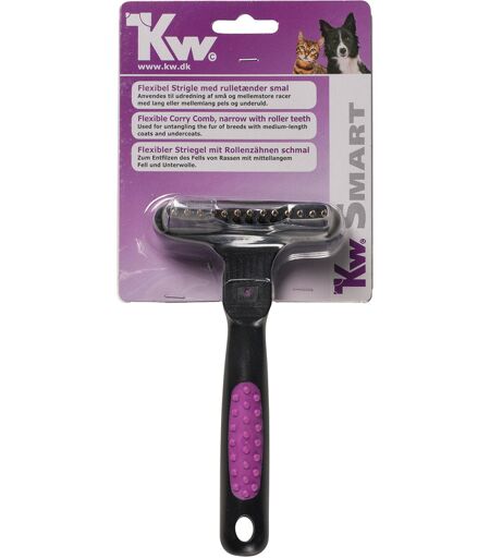 KW Smart Slicker Brush with Rolling Teeth – 1 Row Brush from KW designed to detangle the coat of animals with medium-length fur and undercoat. The flexible rolling teeth adapt to the shape of the body, allowing the brush to effectively remove loose undercoat without damaging the topcoat or skin. Instructions for use: Brush in the direction of hair growth. Work on one section at a time. For long fur or thick undercoat – work with small sections at a time. ...